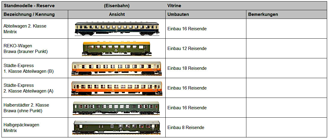 Diese Modelle sind als Reserve bzw. Ersatzteilspender vorgesehen. Die Wagern sind schon mit Reisenden bestückt.